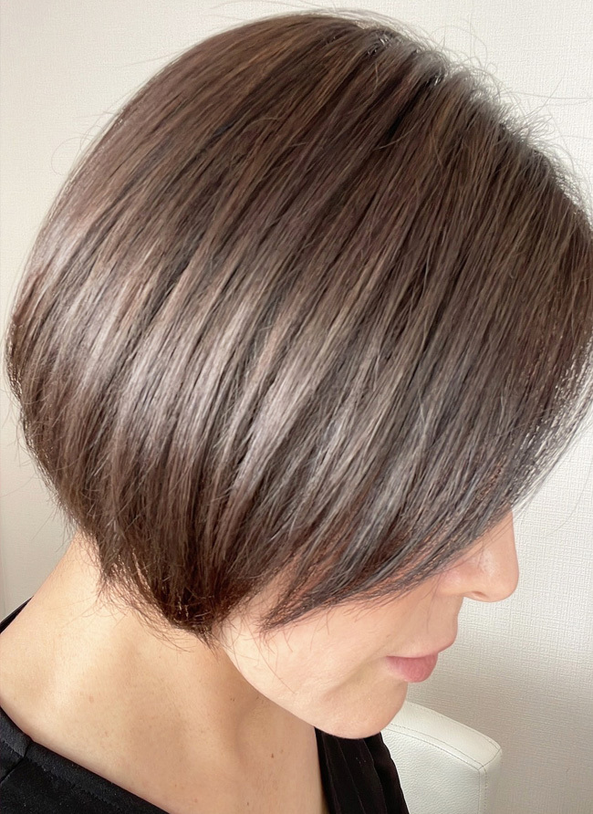 髪もしっとり艶やかになり上品な髪色と透明感が出ました。