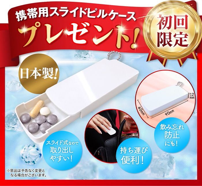 お値段そのままで持ち運びに便利なピルケースがついてくる!