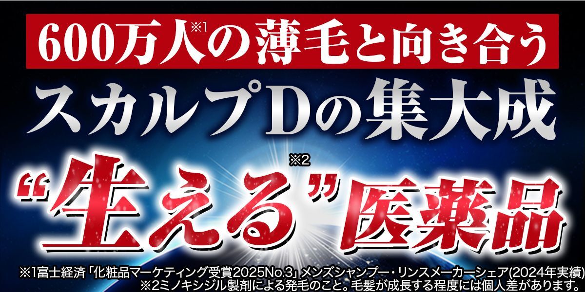 ※1壮年生脱毛症における男性用発毛剤※2国が一般用医薬品として承認している最大濃度